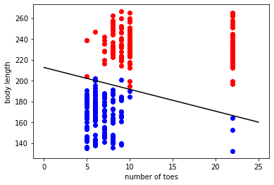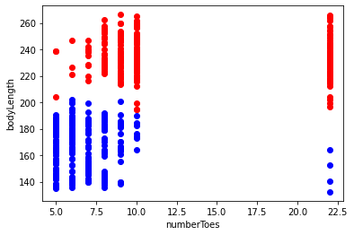 x = np.array(d_dat[['numberToes','bodyLength']])
