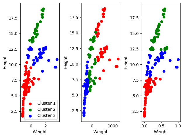 ax2.legend([l1,l2,l3],['Cluster 1','Cluster 2', 'Cluster 3'])
